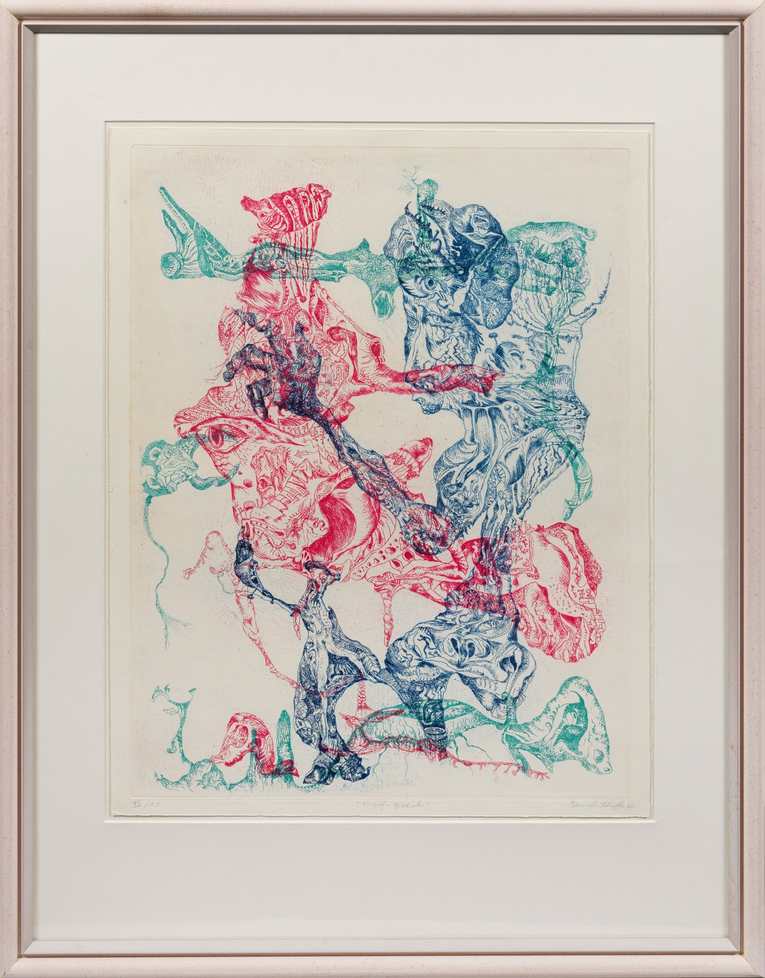 Farbradierung/Velin, 1968. Sign., dat. (19)68, betitelt und nummer. VII/XX. Wvz. Heuer 109. Plattenmaß 64 cm x 49,4 cm. Blatt 67,3 cm x 53,3 cm. Rahmen.