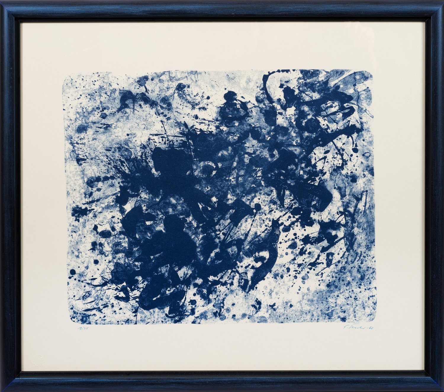 Farblithographie in Blau/chamoisfarbenes Velin. Sign., dat. (19)60 und nummer. 12/35. Edition Van De Loo (Trockenstempel). Darstellung 42,7 cm x 53 cm. Blatt ca. 60 cm x 70 cm. Rahmen.