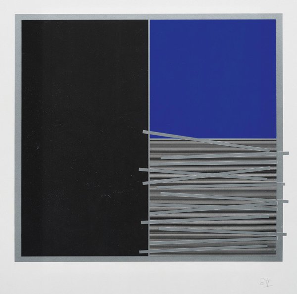 Farbserigrafie/leichter Karton, 1971. Sign. und nummer. 43/175. Eines von 8 Blättern aus der gleichnamigen Mappe, erschienen bei Edition Denise René/Hans Mayer, Düsseldorf (Trockenstempel). Darstellung 41,7 cm x 43 cm. Blatt ca. 84 cm x 59,5 cm. Rahmen.