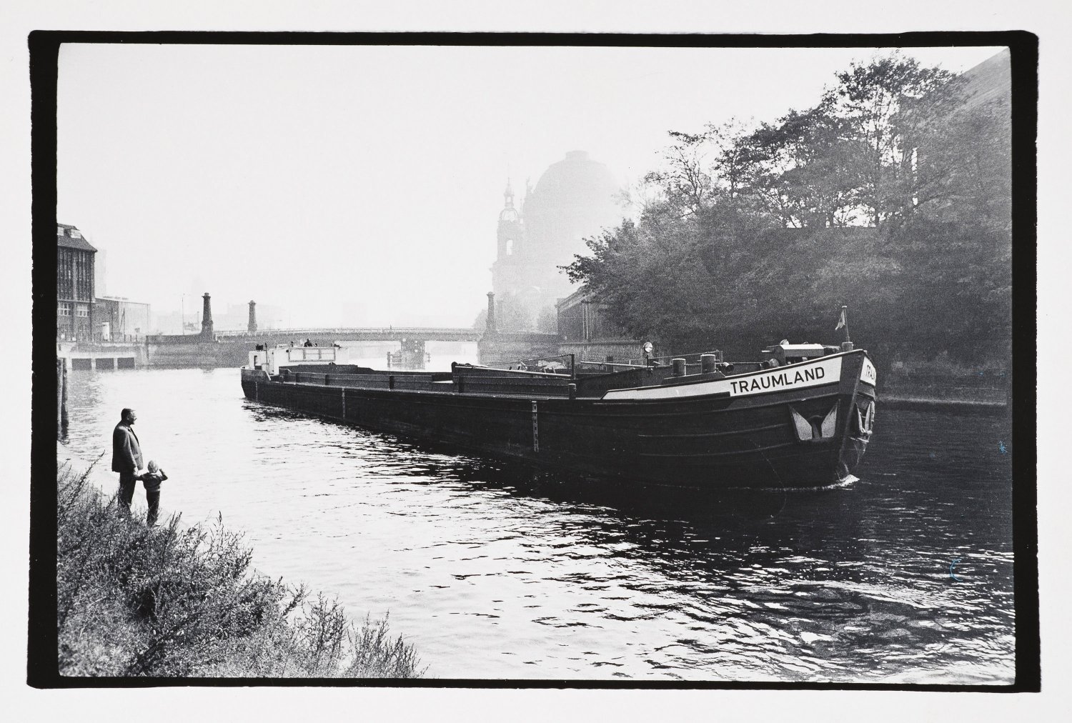 Silbergelatine-Abzug auf Barytpapier. Rücks. Copyright-Stempel Evelyn Richter VDJ Leipzig (…), Versch. Bleistift-Bezifferungen. Darstellung eines Binnenfrachters mit dem Namen „Traumland“ auf der Spree vor der Berliner Museumsinsel von großer symbolischer Kraft. Ca. 20,5 cm x 30,5 cm/Blattgröße 30 cm x 40 cm. Minim. Alters- und Gebrauchsspuren, nur im Streiflicht erkennbare Rillen.