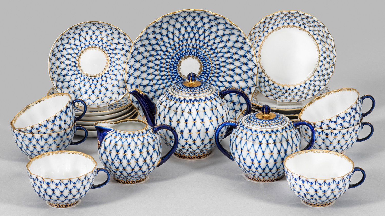 Lot 2576: Russisches Teeservice mit Dekor "Kobaltnetz"