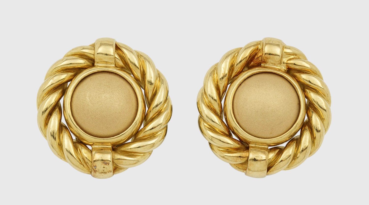 Gelbgold, gest. 750. Kordel-Kranz mit mattiertem, goldenem Medaillon. Meistermarke "TALY". Gew. ca. 15,20 g.