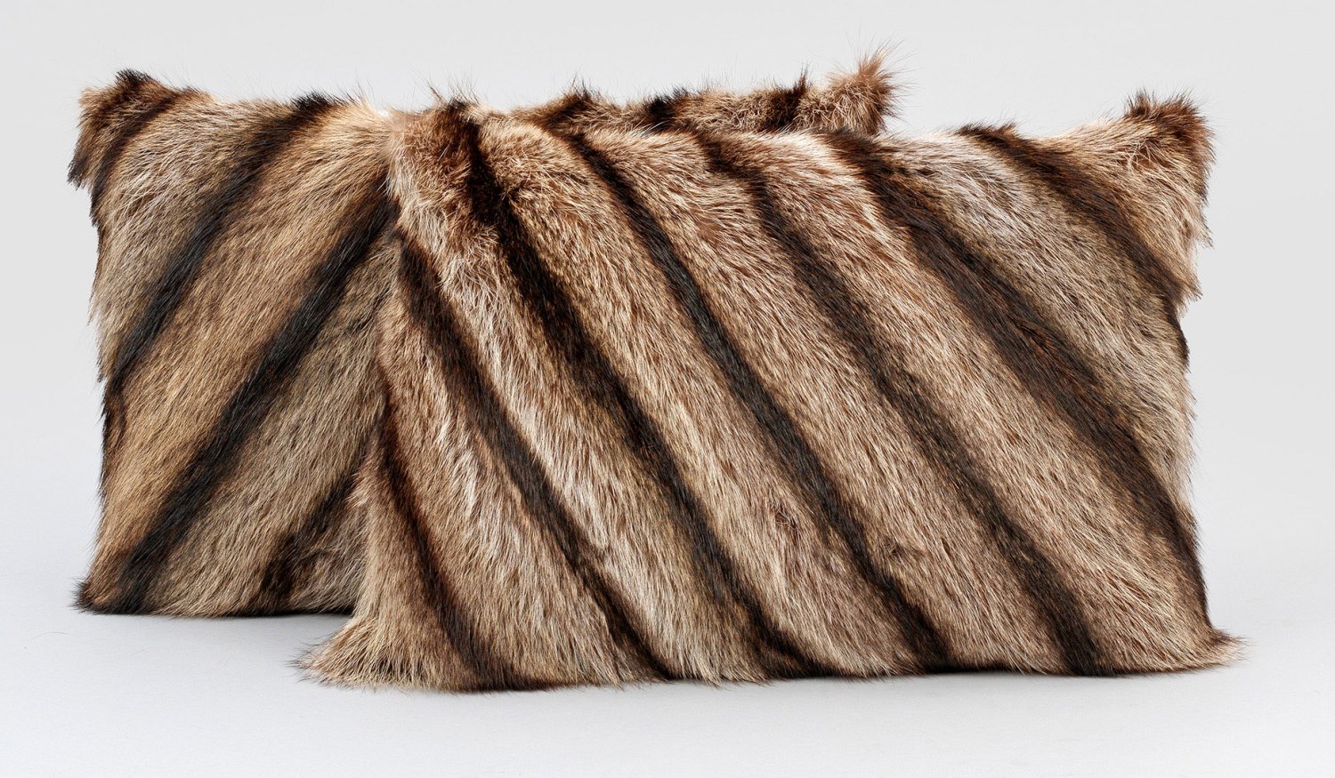 Two racoon fur and alkantara pillows.