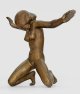 Bronze, braun patiniert, 1921. Unter dem rechten Fuß monogr. sowie Gießerstempel "H. NOACK BERLIN". Von der Familie und vom Kolbe-Museum in Berlin autorisierter, posthumer Guss (Nr. 8) aus dem Jahr 1963 für den amerikanischen Sammler Alfred R. Bromberg, Dallas/Texas/USA. Kolbe, dem 1912 mit seiner später von der Nationalgalerie erworbenen "Tänzerin" in der Berliner Secession der künstlerische Durchbruch gelang, wurde 1919 als Mitglied in der Preußischen Akademie der Künste aufgenommen und wirkte 1919-1921 als Präsident der Freien Secession Berlin. Die vorliegende, ursprünglich 1921 von Kolbe geschaffene Aktfigur einer knienden jungen Frau mit weit ausgebreiteten Armen und gesenktem Kopf, gehört zu den bedeutendsten und ausdrucksvollsten Plastiken aus dieser expressionistischen Periode im Oeuvre Kolbes. 1921/22 entstand nur eine kleine Auflage von 12 oder 13 Güssen (Exemplare befinden sich außer in der Nationalgalerie u. a. im Museum of Modern Art in New York. 1921 zeigte Kolbe die "Klage" erstmals in einer Einzelausstellung in der Galerie Paul Cassirer in Berlin, danach in vielen weiteren Ausstellungen, u. a. 1924 in der Akademie der Künste und 1931 im Museum of Modern Art in New York. H. 39 cm; B. 54,5 cm.