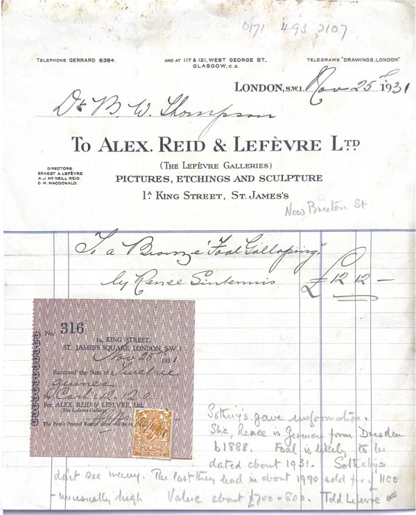 Provenienz: Original-Kaufbeleg Alex. Reid & Lefèvre Ltd., London, 25.11.1931.