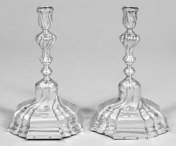 A pair of German Rococo silver candlesticks. City mark, unidentified master´s mark IP.