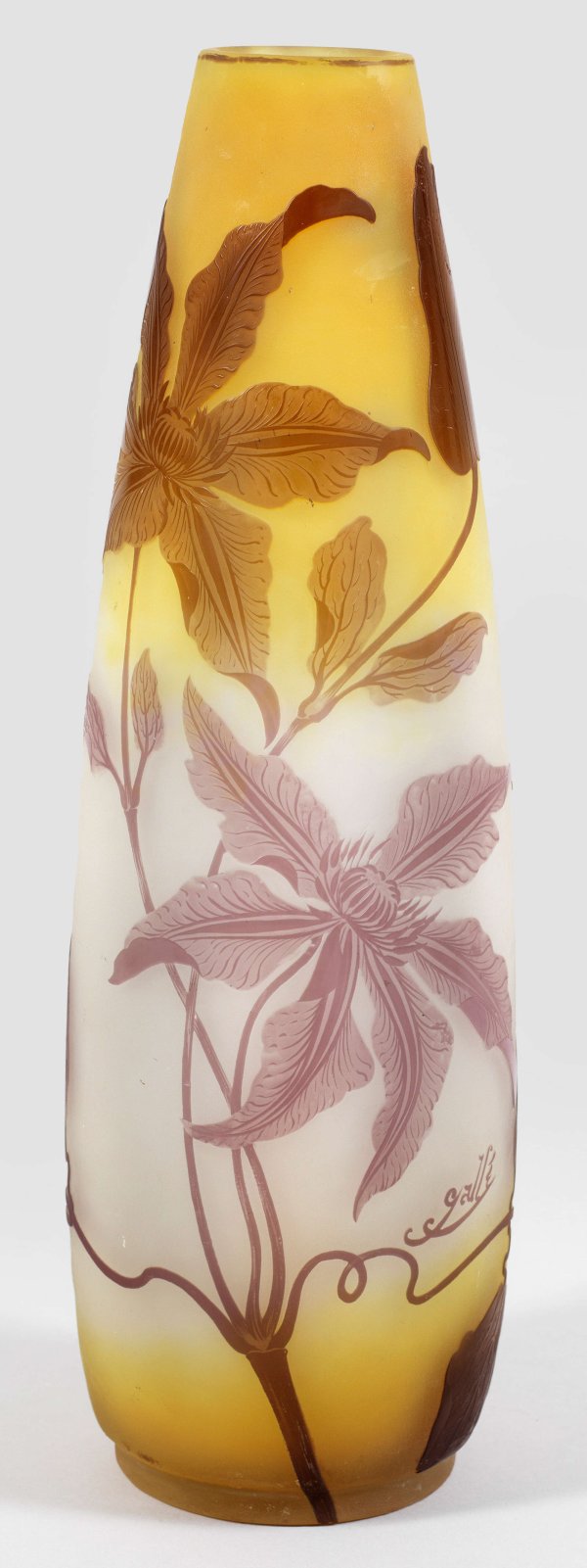 Lot 333: Große Gallé-Vase mit Clematis-Dekor