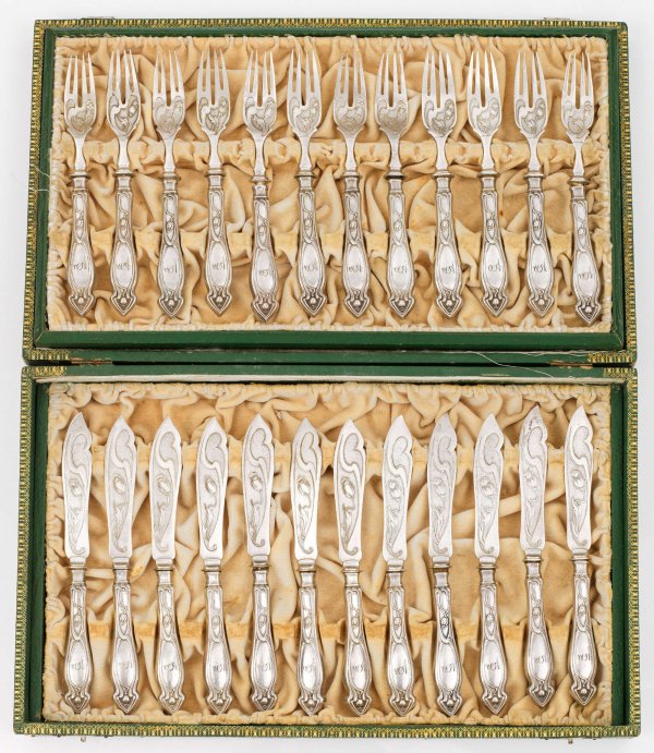 Lot 494: Jugendstil-Dessertbesteck für zwölf Personen