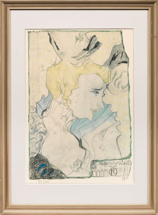 Farbige Fotolithographie bzw. Farboffset/Velin. 1981. Nach der berühmten Lithographie von Henri Toulouse-Lautrec. Sign., dat. (19)81 u. nummeriert 94/300. Darstellung ca. 41 cm x 28,5 cm. Rahmen.