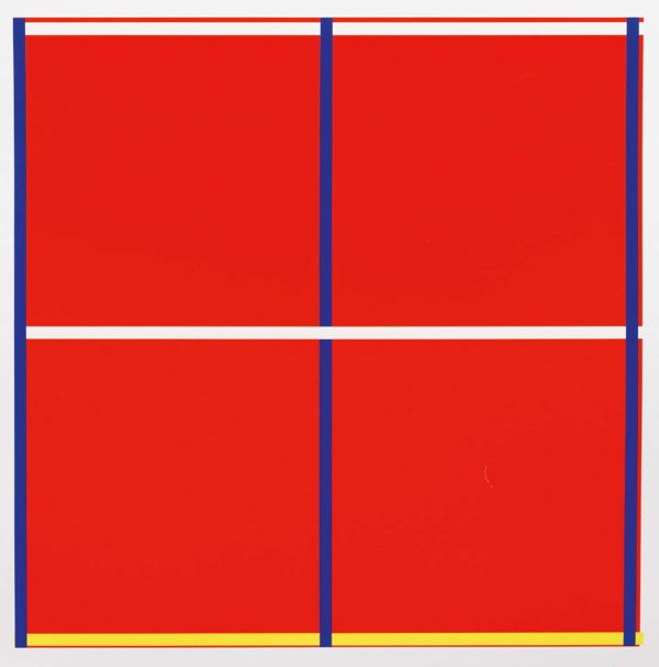 Farbserigraphie/Fabriano Bütten, 1995. Sign., dat. (19)95 u. nummeriert 29/40. Blindstempel des Druckers Edition Domberger, Stuttgart. Herausgegeben von der Achenbach Art Edition, Düsseldorf. Darstellung ca. 100,5 cm x 100,5 cm. Blatt 124 cm x 124 cm. Eine Läsur im rechten unteren roten Farbfeld, minim. Einriss im Blattrand, Ecken teilw. ger. knickfaltig.