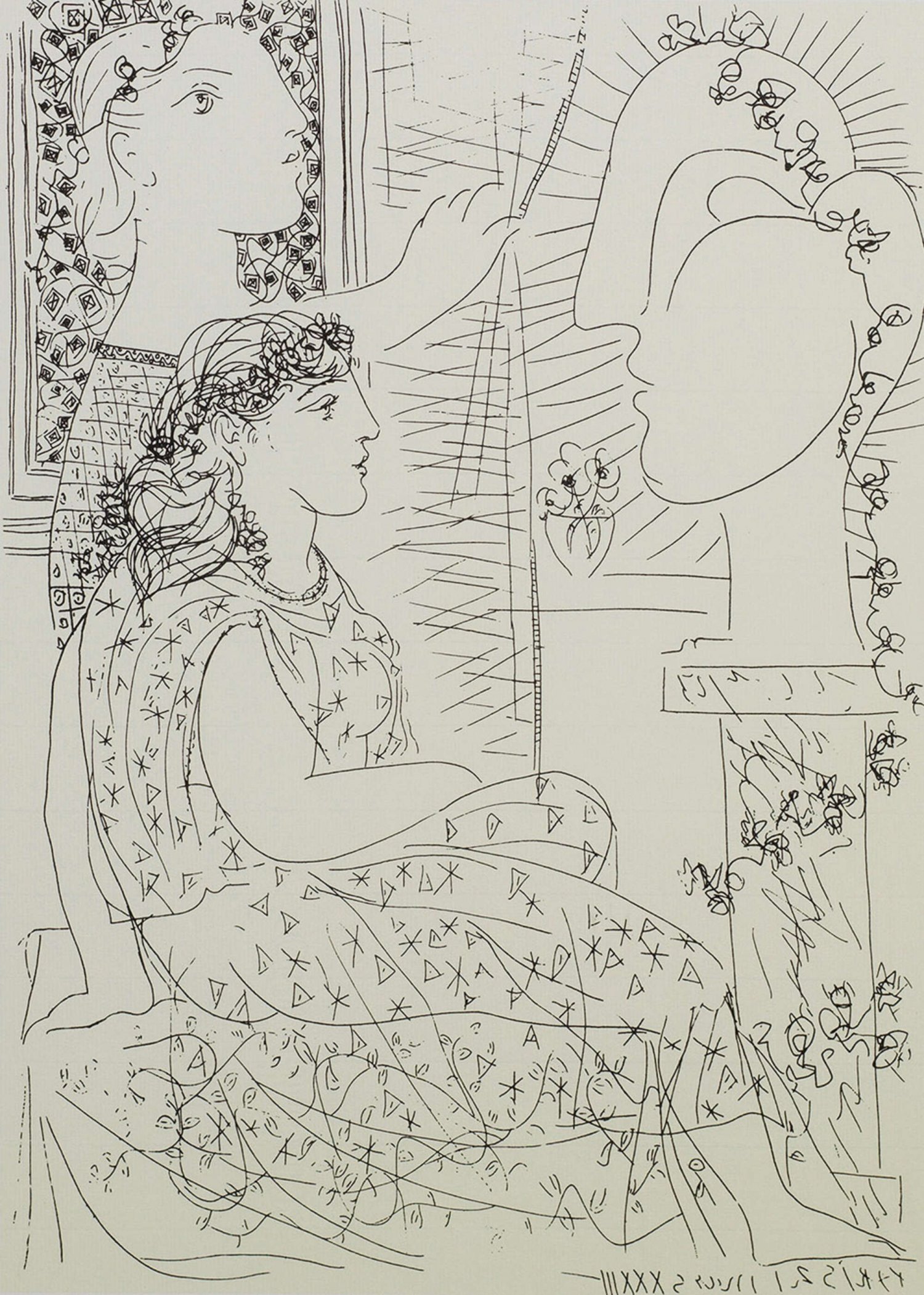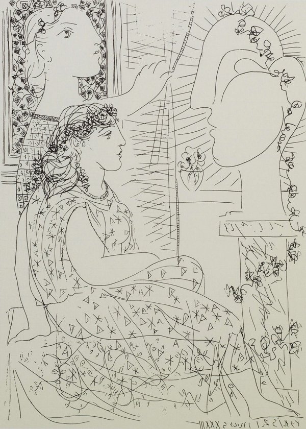 Posthum erschienener, zeitgenössischer Druck nach der 1933 geschaffenen berühmten Radierung aus der "Suite Vollard" (Blatt 42). Darstellung 45 cm x 32,5 cm. Rahmen.