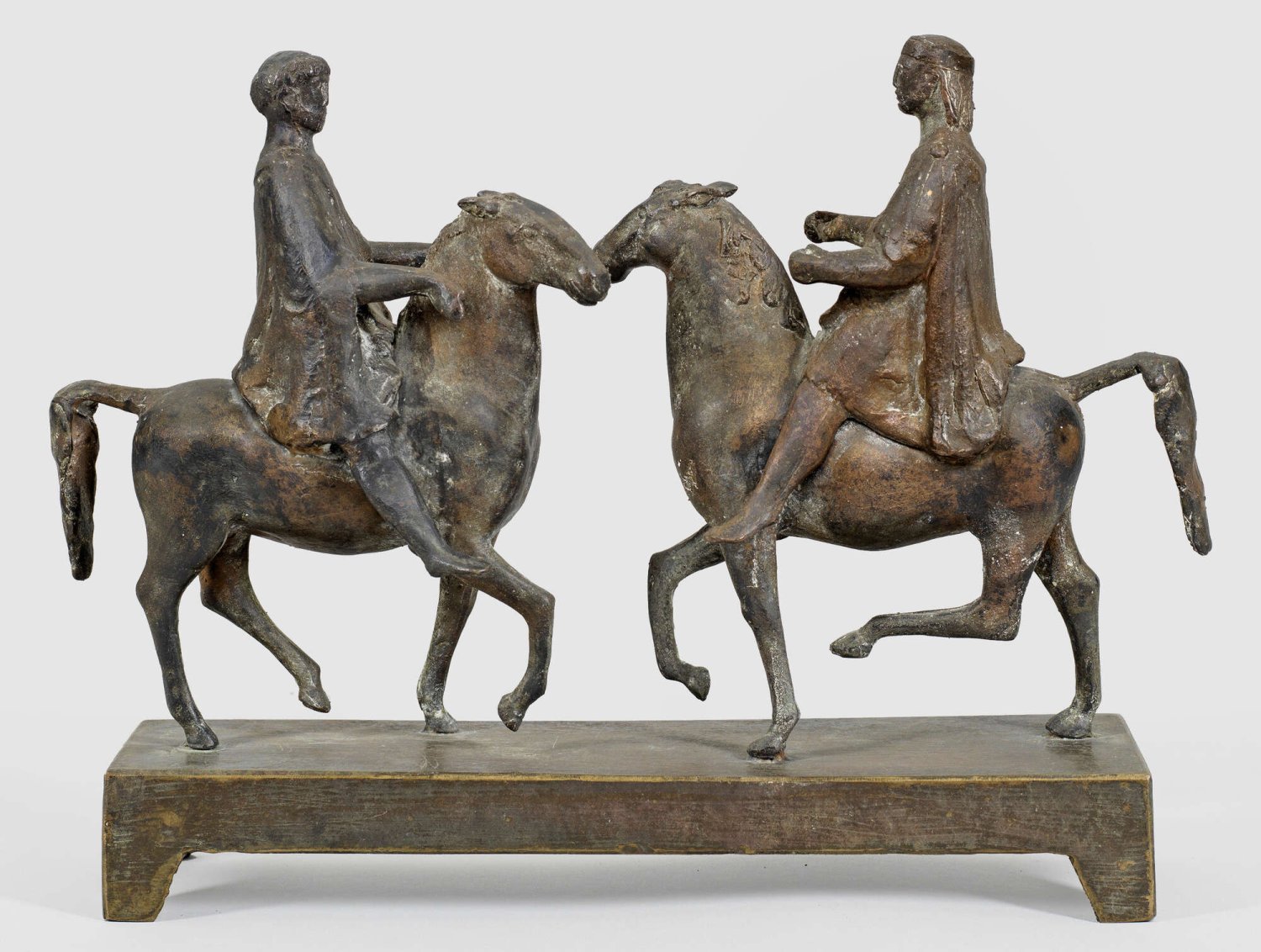 Bronze, braun patiniert, 1978. In moderner Weise stilisierte Darstellung der beiden aufeinander zureitenden Persönlichkeiten. Der 1942-1944 an der Akademie in München ausgebildete Bildhauer war 1946/47 Assistent von Edwin Scharff an der Landeskunstschule Hamburg und arbeitete seit 1950 insbesondere an Werken mit biblisch-christlichen Motiven für Sakralbauten. Diese Kleinplastik entstand im Zusammenhang mit einem nicht realisierten Entwurf Bückers für den Marktbrunnen in Paderborn. 26 cm x 35 cm x 8,2 cm.