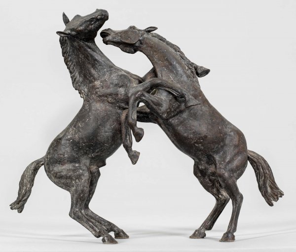 Bronze, dunkel patiniert, 1996. Sign. u. nummeriert 4/20. Lebendig beobachtete Darstellung miteinander rivalisierender Hengste. Tiere, besonders Darstellungen von Pferden in ihrer Dynamik, Kraft und Eleganz, spielen in Eberts Schaffen eine große Rolle. Ebert absolvierte eine Ausbildung zum Holzbildhauer, studierte an der Akademie in München bei Erich Koch und lernte im Atelier von Hans Wimmer. Neben Kleinplastiken befasst sich Ebert mit großen Arbeiten für den öffentlichen Raum in Deutschland und den Niederlanden; auch die "Hengstgruppe" realisierte er 1999 noch einmal in großen Dimensionen. H. 43,5 cm.