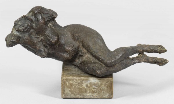 Bronze, dunkelbraun patiniert. Monogr., Gießerstempel "BARTH". Steinsockel. Jahresgabe des Kunstvereins Düsseldorf, 1964. Wvz. Knappe 1/64. Ges.-H. 10,5 cm.