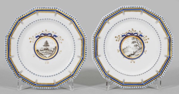Lot 730: Paar Ansichtenteller aus dem sog. Bayerischen Königsservice
