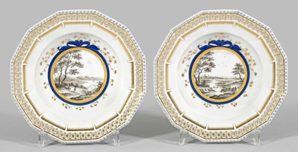 Paar Ansichtenteller mit Dekor aus dem sog. Bayerischen Königsservice