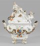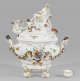 A monumental porcelain tureen with elaborately designed lid as centre piece decorated with the so-called "Swan service" decor for Heinrich Count of Brühl. Modelled by Johann Joachim Kaendler in 1738. Crossed swords mark.