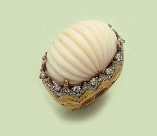 Lot 1144: Extravaganter Cocktail-Brillantring mit Koralle