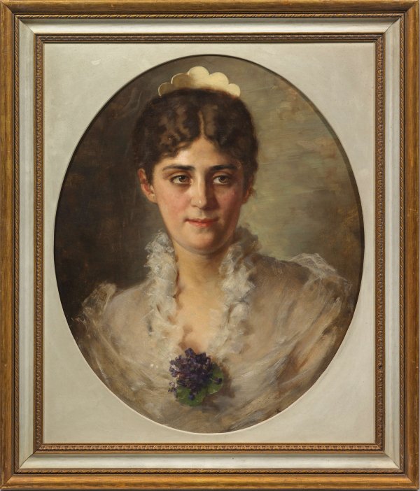 Der Berliner Porträtmaler Encke studierte ab 1869 an der Berliner Kunstakademie bei Karl Gussow und 1872 an der Kunstschule Weimar bei Theodor Hagen. Aufenthalte in Rom und Paris schlossen seine Ausbildung ab. Zu seinen Auftraggebern gehörten Prominente und Reiche. Das bekannteste Werk dürfte das ganzfigurige Porträt des US-Präsidenten Theodore Roosevelts sein, das Encke 1902 in den USA fertigte. Öl/Lwd., auf Holztafel kaschiert. Sign. u. dat. 1878. Ovalformat 59,5 cm x 51 cm. Rahmen.
