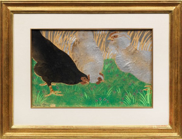 Der vielseitige Künstler und Sohn von Camille Pissarro stellte regelmäßig mit der Avantgarde seiner Zeit im Pariser Herbstsalon und dem Salon des Indépendants aus. Das Bild gehört zur Gruppe von Werken, in denen er mit Gold-, Silber- und Kupferfarbe zu einer sehr speziellen, faszinierenden Bildwirkung gelangte. Mischtechnik/Papier. L. u. sign.; Passepartoutausschnitt 29 cm x 45 cm. Rahmen.