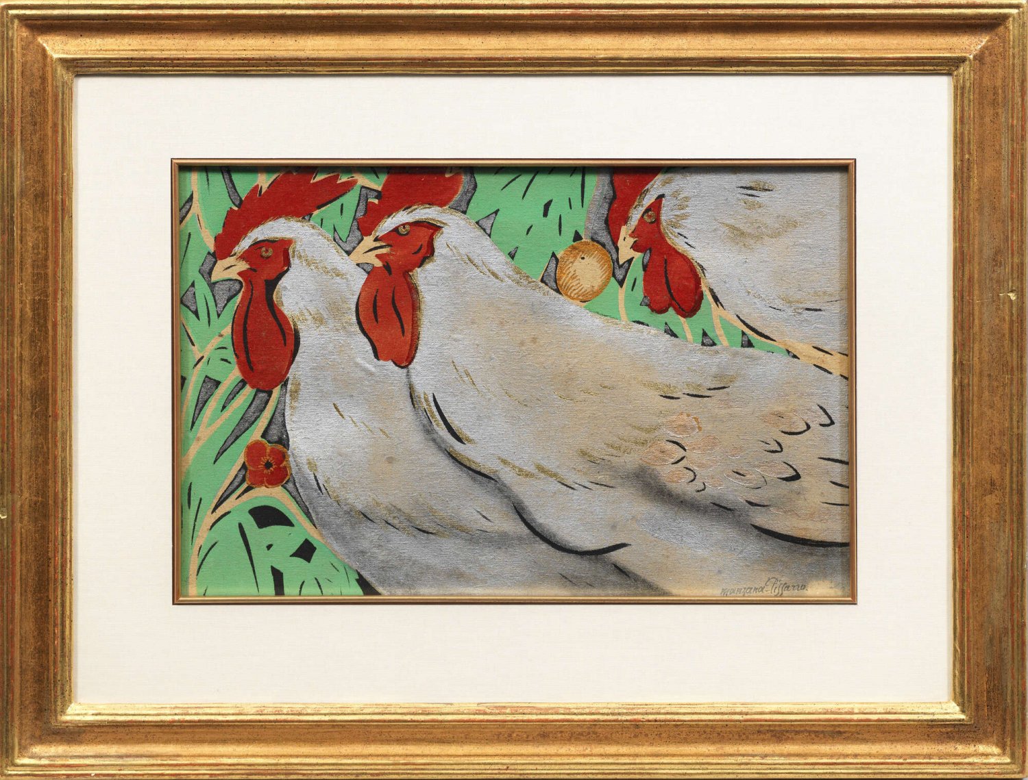 Der vielseitige Künstler und Sohn von Camille Pissarro stellte regelmäßig mit der Avantgarde seiner Zeit im Pariser Herbstsalon und dem Salon des Indépendants aus. Das Bild gehört zur Gruppe von Werken, in denen er mit Gold-, Silber- und Kupferfarbe arbeitete. Mischtechnik/Papier. R. u. sign.; Passepartoutausschnitt 29 cm x 44 cm. Rahmen.