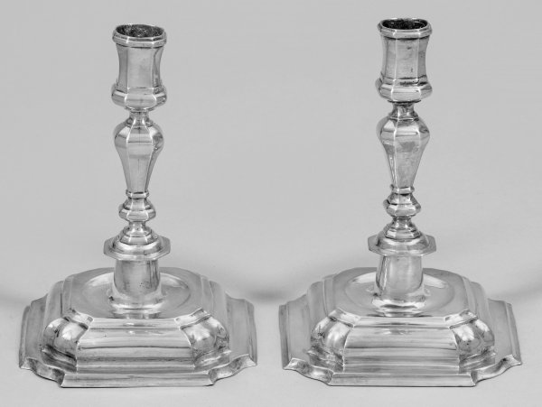 A pair of Baroque candlesticks by Paulus Löw (master since 1760). City- and master´s mark.