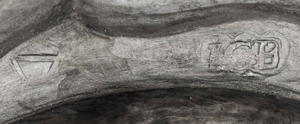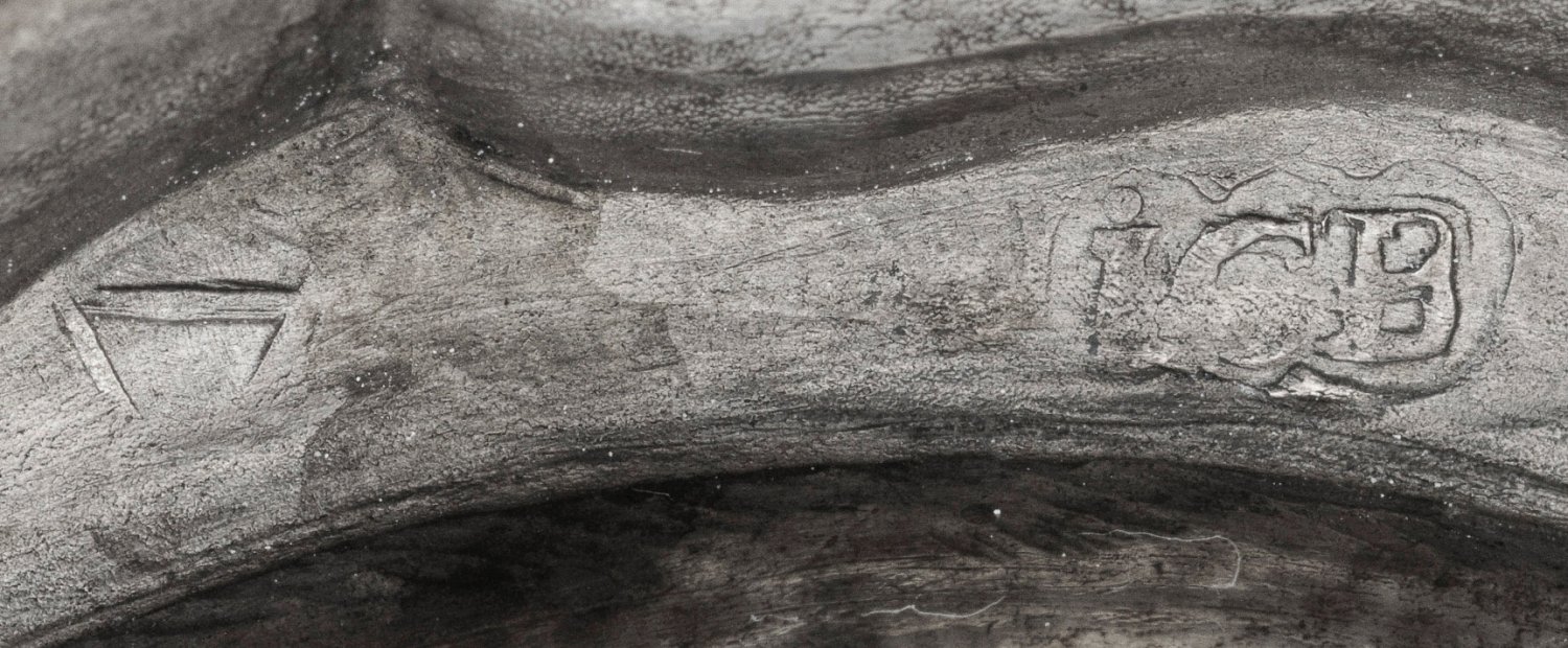 Markenkombination möglicherweise Warendorf, Meister Johann Caspar Bayer (wird Meister 1749), Herford, Meister Johann Conrad Besthorn (wird Meister 1745), Stralsund, Jacob Christoph Block (wird Meister 1739).