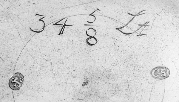 A German Baroque bowl by Christopher Schultze (master since 1739). Gilt inside. Assay- and maker´s mark.