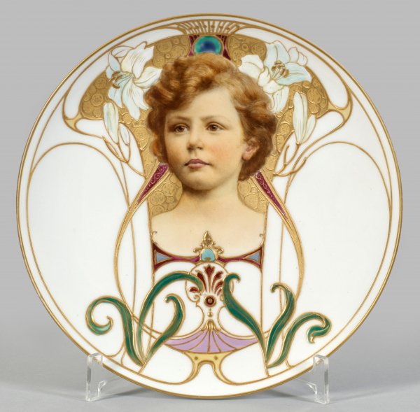Lot 220: Jugendstil-Wandteller mit Kinderporträt