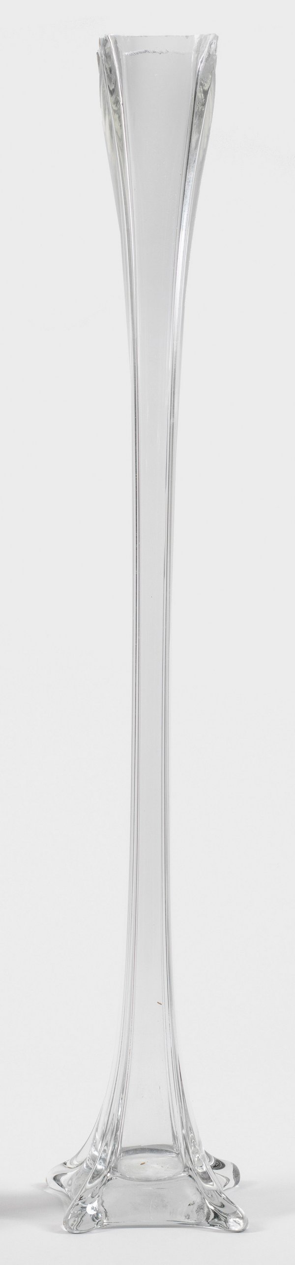 Monumentale Jugendstil-Stangenvase Vierpassige, an den Ecken akzentuierte Vase mit ausgestelltem Fuß und korrespondierend ausschwingendem Rand. Farbloses Glas. Lippenrand ger. best.; H. 111,5 cm.