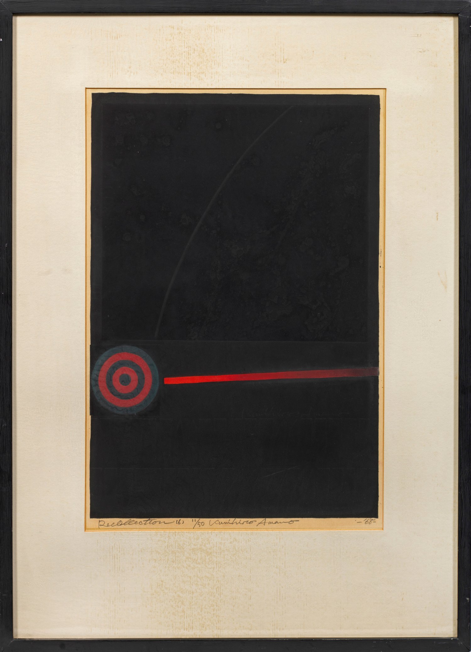 Farblinolschnitt und Prägedruck/Papier, 1968. Sign., betitelt, dat. u. nummeriert 11/50. Amano gehört zu den bedeutendsten zeitgenössischen japanischen Grafikern, er gewann auf internationalen Ausstellungen seit 1960 eine Reihe von Preisen und ist außerhalb Japans auch in Museen in den USA und Europa vertreten. Gebräunt. Darstellung 54,5 cm x 38 cm. Rahmen.