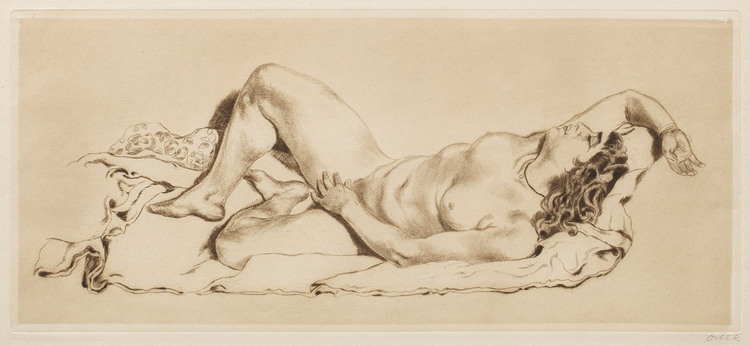 Kaltnadel mit Roulette in Braun/chamoisfarbenem Velin, 1911. Sign.; Breitrandiges Exemplar, nur zu den Ecken partiell ger. knickfaltig. Plattenmaß 16,4 cm x 37,2 cm; Blatt 26 x 47cm. Rahmen.