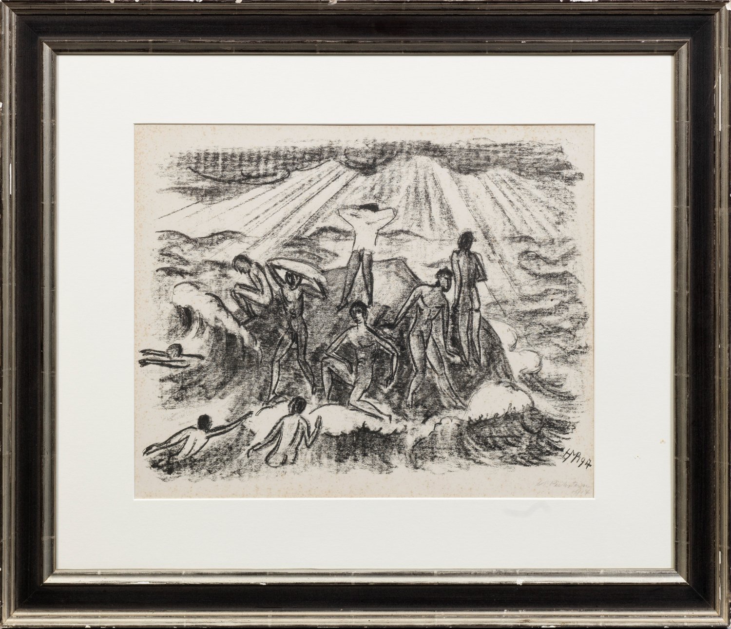 Lithographie/Papier, 1917. Sign. u. dat.; überdies im Stein monogr. u. dat.; Blatt I der Mappe "Italienische Fischer" als erstes Werk der Gurlitt-Presse, erschienen im Verlag Fritz Gurlitt, Berlin, 1919. Wvz. Krüger L 179. Verso Galerie-Etikett. Ger. stockfleckig. Darstellung ca. 32,5 cm x 42,5 cm. Rahmen.