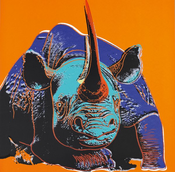 Blattgroße Farbserigraphie/Lennox Museum Board, 1983. Abzug außerhalb der Auflage von 150 Expl. (sowie jeweils 30 Probedrucke, 30 Künstler-Expl. u. einige römisch nummerierte Abzüge gestiftet an Wildtierschutz-Organisationen), gedruckt von Rupert Jasen Smith, New York (mit dessen Blindstempel). Herausgegeben von Ronald Feldman, New York; verso mit dem Warhol-Copyright Stempel und dem Herausgeber-Stempel in Rot, dat. 1983. Wvz. Feldman/Schellmann II.301. Großformatige, bedeutende Grafik des Pop Art-Künstlers, der 1983 das Portfolio "Endangered Species" mit insgesamt 10 Farbserigraphien schuf. Blatt 96,5 cm x 96,5 cm.