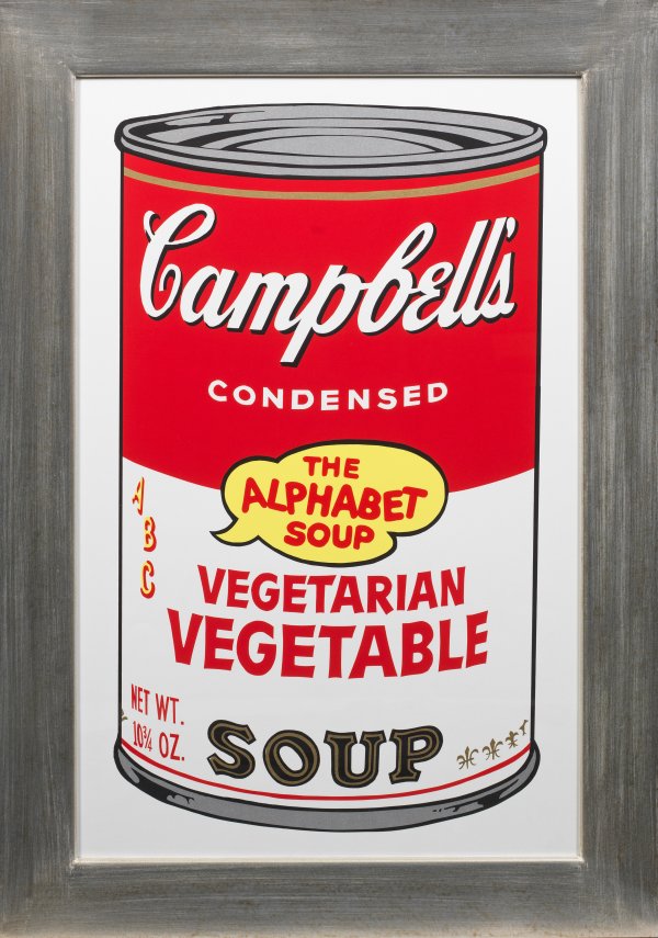 Farbserigraphie/Karton. Wohl Abzug aus der Sunday B. Morning-Edition, nach dem 1969 erschienenen Siebdruck Warhols aus der Campbells-Serie (vgl. FS II.56). Blatt ca. 88 cm x 58 cm. Galerie-Rahmen.