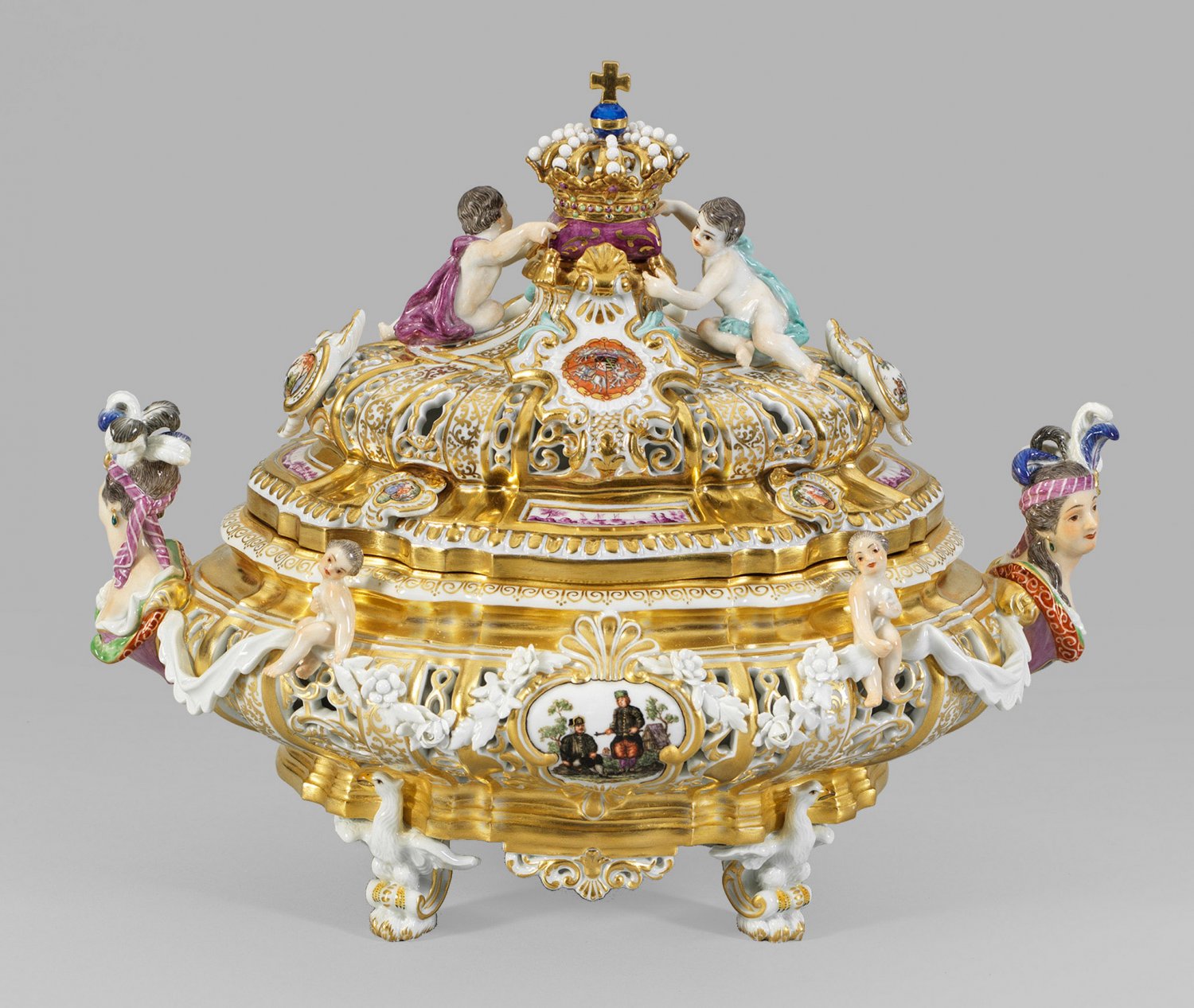 A small royal splendid tureen, originally made for Maria Josepha of Austria, wife of King August III. of Poland. Crossed swords mark.