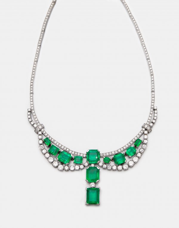 Lot 1096: Glamouröses Brillantcollier mit kolumbianischen Smaragden