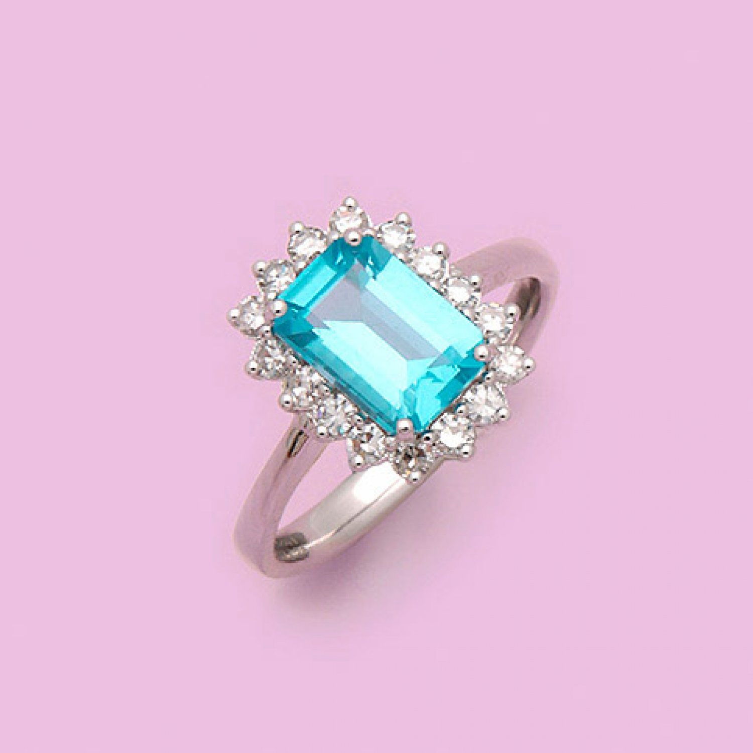 Hochfeiner Apatit-Brillantring Weißgold, gest. 750. Zentral besetzt mit einem türkisblauen Apatit von ca. 2,30 ct., entouriert von Brillanten von zus. ca. 0,46 ct. (F/vvs). Gew. ca. 21,90 g.