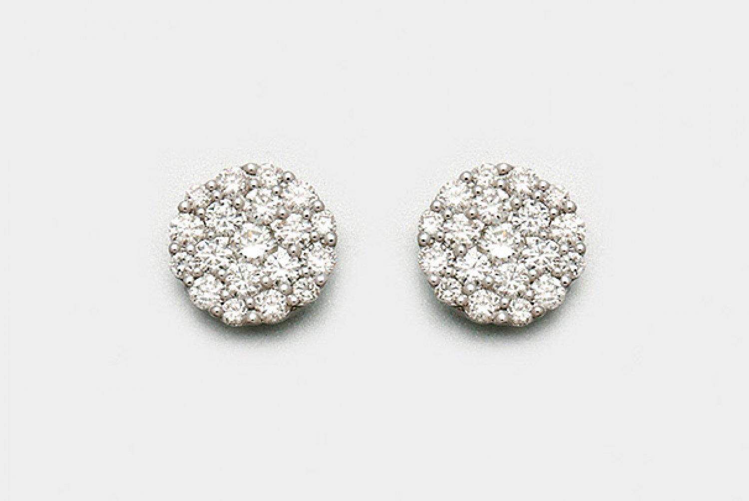 Paar elegante Brillant-Ohrringe Weißgold, gest. 750. Schauseitig besetzt mit Brillanten von zus. ca. 1,36 ct. (F-G/vs). Gew. ca. 3,94 g.