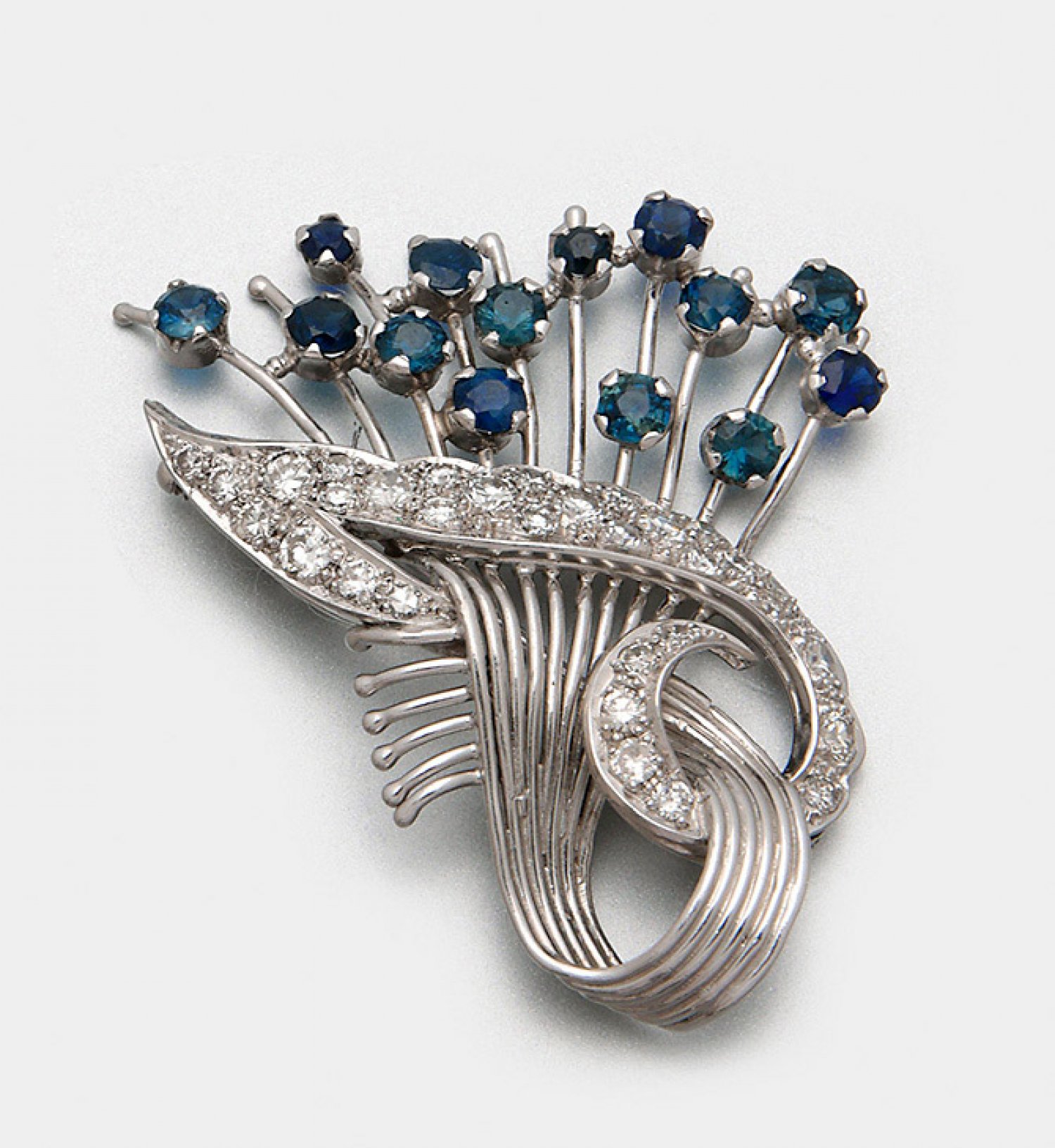 Lot 1119: Repräsentative Saphir-Brillantbrosche