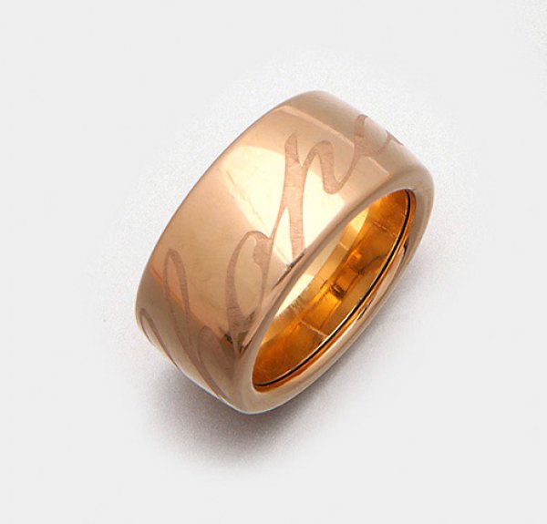 Bandring von Chopard aus der Kollektion "Chopardissimo". Roségold, gest. 750. Breite, leicht gewölbte Bandform mit drehbarem Innenring, schauseitiger Chopard Logo-Schriftzug. Herstellerzeichen. Nahezu ungetragener Zustand. Gew. ca. 20,82 g.