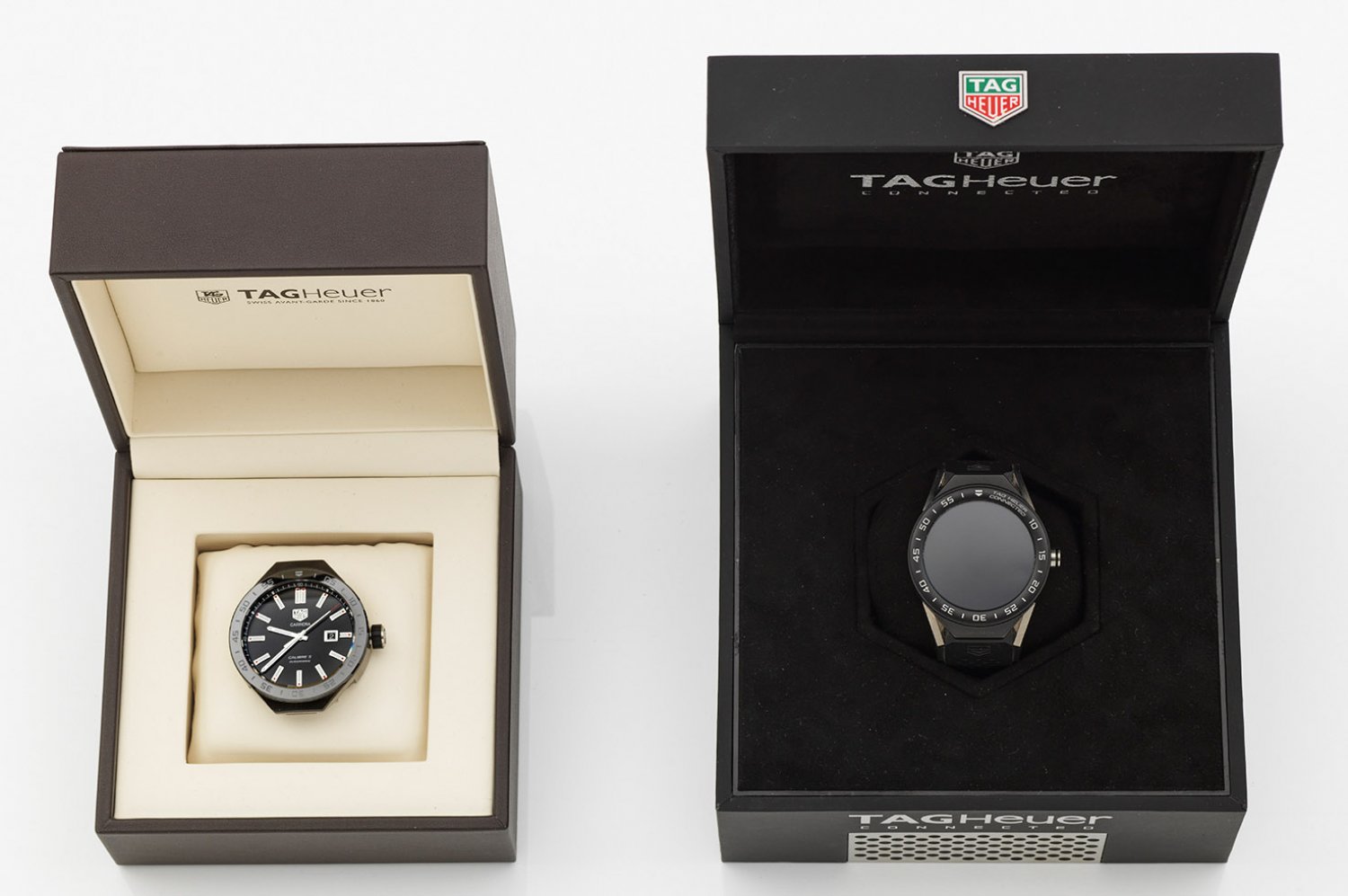 Herrenarmbanduhr von TAG Heuer aus der Kollektion "Connected Modular-Model SBF8A-Automatikmodul- und Digitalmodul" von 2018. Stahl und Keramik. Austauschbare schwarze Kautschuk-Armbänder. Runde Original-Box und Papiere. Nahezu ungetragen. Gekauft bei Wempe 2018 für ca. € 4.000,-.