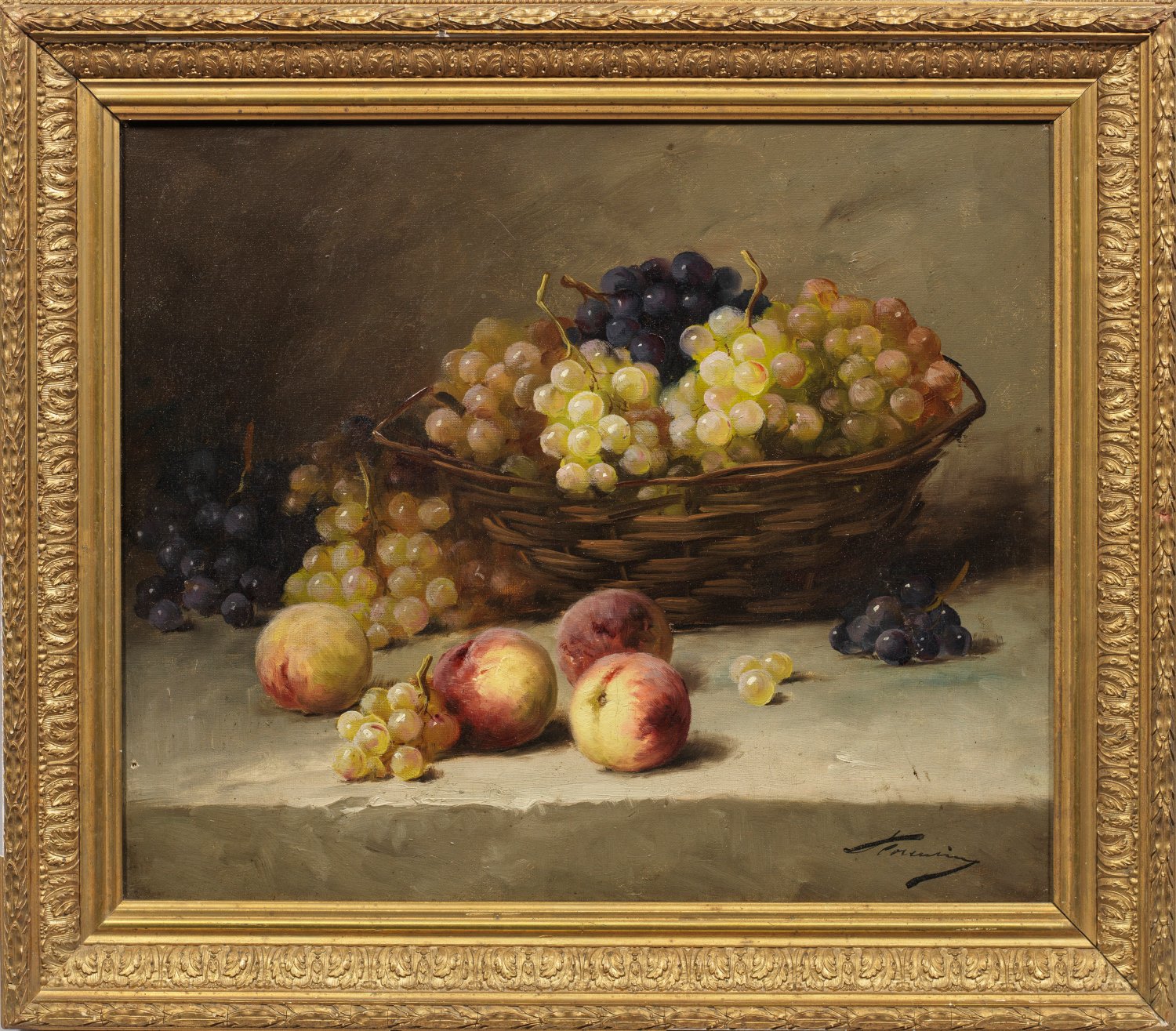 Stillleben mit Weintrauben und Pfirsichen