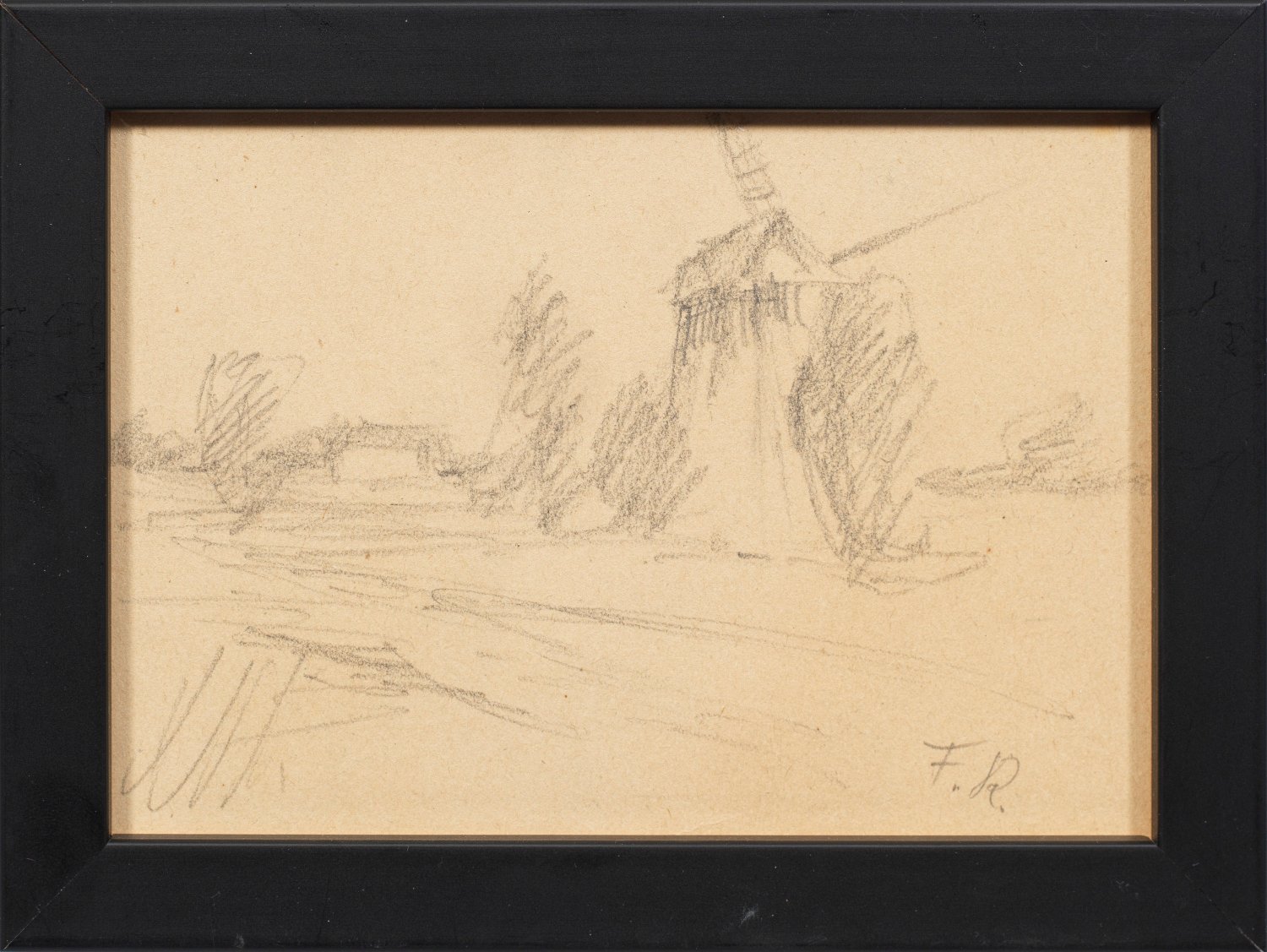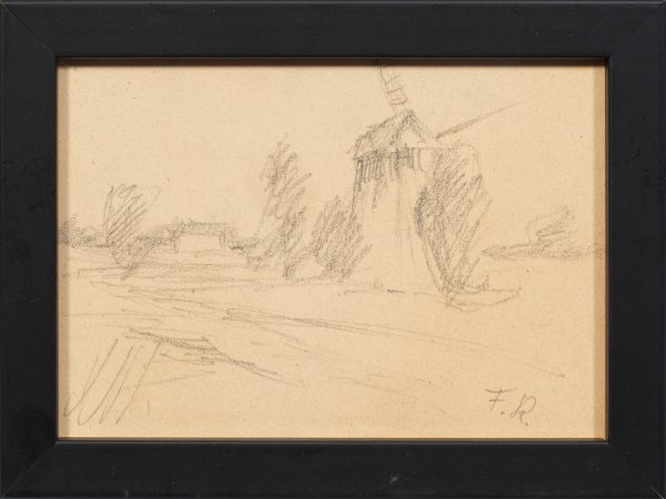 Im Oeuvre Radziwills, der 1921 erstmals ins Fischerdorf Dangast bei Varel kam und 1923 dort ansässig wurde, bildet die norddeutsche Landschaft, insbesondere die Umgebung in Friesland den Schwerpunkt seines Oeuvres. Bleistift/Papier. R. u. monogr.; Ca. 10 cm x 14,5 cm. Rahmen.