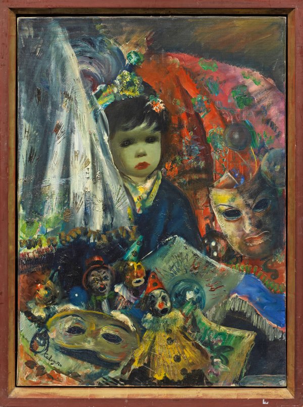 Surrealistische, in der Motivwahl charakteristische Komposition Calogeros, der 1947 nach Paris ging, um an der École des Beaux-Arts zu studieren. Frankreich wurde zu seiner zweiten Heimat. Er richtete sein Atelier in Montmartre ein und hatte rasch erste Erfolge. 1949 nahm ihn die Galerie Hervé in Paris unter Vertrag, 1950 hatte Calogero seine erste Einzelausstellung, der zahlreiche bis Japan und in die USA folgten. 1957 erhielt er die Große silberne Medaille der Stadt Paris. Viele öffentliche und private Sammlungen erwarben Werke Calogeros, darunter berühmte Musik- und Hollywood-Stars. Öl/Lwd.; L. u. sign.; 73 cm x 54 cm. Rahmen.