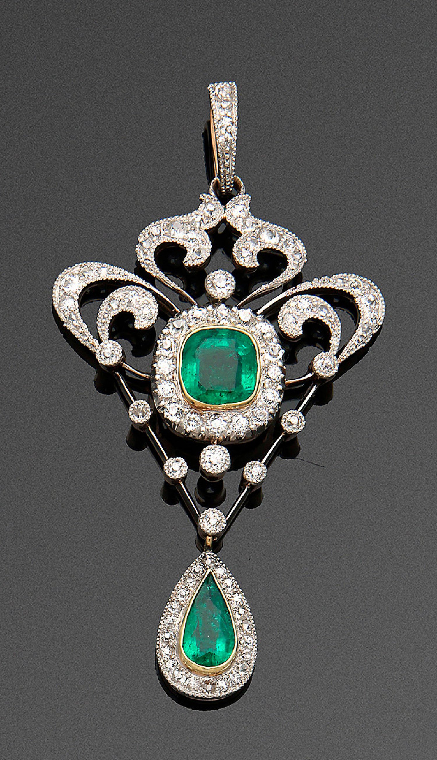 Lot 977: Jugendstil Brosche mit kolumbianischen "Muzo"-Smaragden