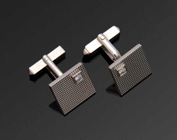 Lot 981: Paar Herren-Manschettenknöpfe mit Brillant-Solitären