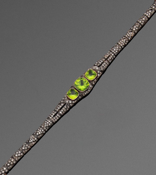 Lot 993: Peridot-Diamant-Armband im Art Deco-Stil in Ajour