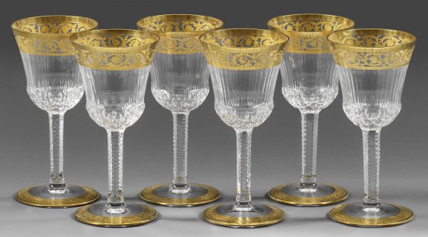 Lot 174: Satz von sechs Saint-Louis-Sherrygläsern "Thistle Gold"