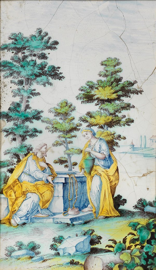 Lot 198: Ofenkachel mit Christus und der Samariterin am Brunnen